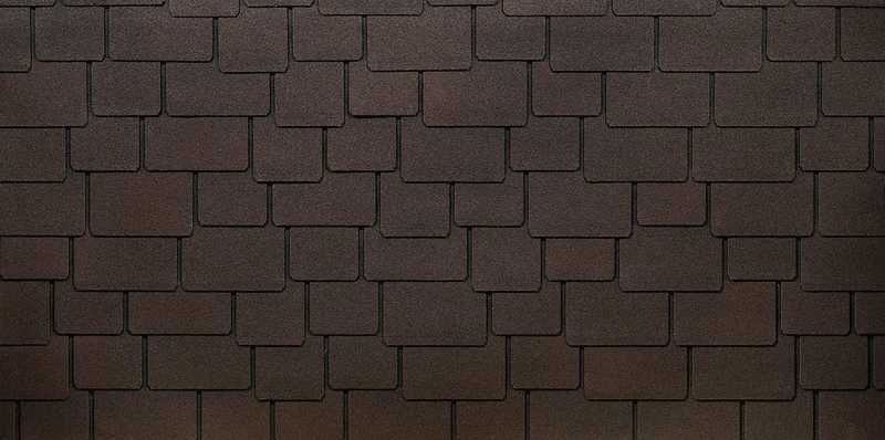 Насыщенный каштановый оттенок с легким переходом цвета в затемнение смотрится благородно и очень дорого. Изюминка дизайна – лепестки разной ширины и длины. Черепица отлично гармонирует со светлым бежевым сайдингом, фасадными панелями под сланец, песчаник, юрский мрамор.