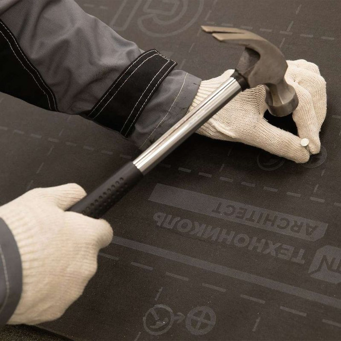 Битумно-полимерный подкладочный ковер механической фиксации с клеевыми монтажными полосами с основой из стеклохолста для скатных кровель с финишным покрытием из гибкой битумной черепицы.