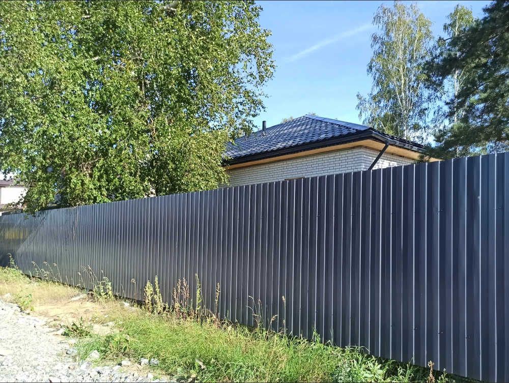 Профилированный лист С-8x1150-B (ПЭ_Д-01-7024-0,45) — популярный материал в Тихвине для обустройства забора. Изначально он представляет собой лист оцинкованной стали с покрытием. Общая толщина металла с цинковым и полимерным покрытием составляет 0.45 мм.Проходя процедуру холодного проката, сталь принимает волнообразный вид. Такая форма придает профилю жёсткость.